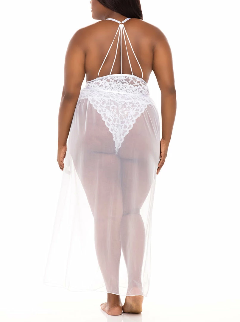 Alluring and seductive, the Jeana Sheer Skirt from OH LÀ LÀ CHÉRI demands to be seen, expertly crafted from the sheer mesh. Designed to plunge dramatically from the waist to the floor and crafted with beautiful floral lace around the waistband. This skirt can be paired with your favorite lingerie or swimwear piece for sheer seduction.