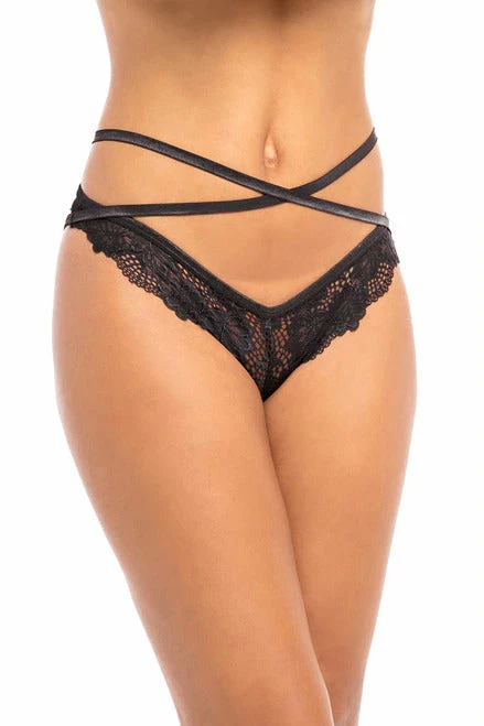 Daring and mischievous, the Caged Back Panty is crafted with floral scalloped lace and designed with intricate straps details. Straps snake around the waist and meet at the back at a ring, creating a caged effect so that provocative flashes of skin can be spied through bold cutouts for maximum impact.