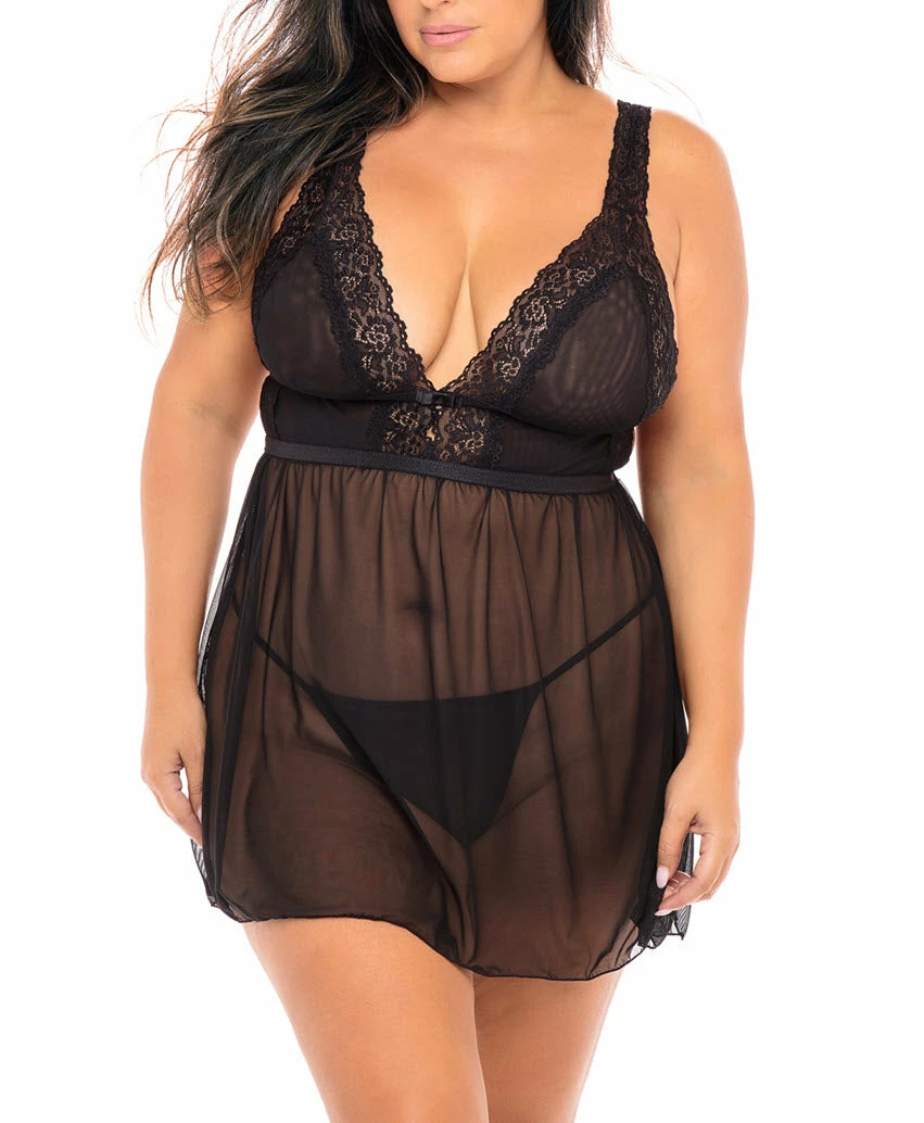 Owning your sensuality is easy in this effortlessly feminine Nora Lace and Mesh Babydoll. Designed with an empire waist, this best-selling babydoll features soft cup and decorative lace neckline that plunges down the neckline. A sheerly seductive mesh babydoll silhouette adorns your shape beautifully, whilst a matching G-String completes the look.
