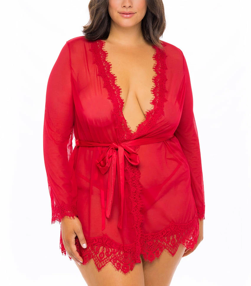 Alluring and sophisticated, the Provence Sheer Mesh & Lace Robe from OH LÀ LÀ CHÉRI is the perfect loungewear piece. This robe is crafted with the softest sheer mesh and beautiful scalloped lace, and features a double-faced satin ribbon designed to be worn tied at the waist or worn open.