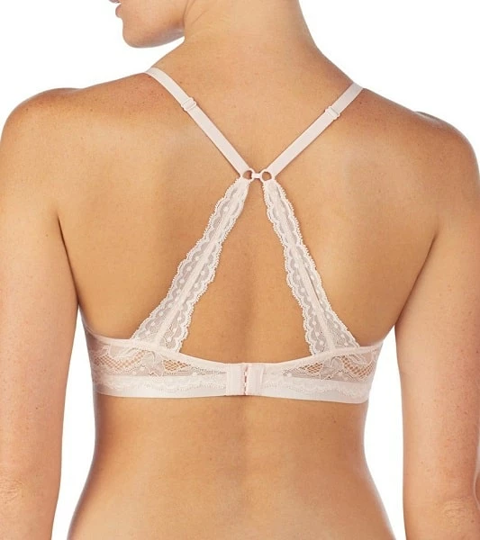 The lace back plunge bra is a bold look with an impeccable fit. The low plunge, scoop neckline and the J-hook straps to the, lace wings, it’s a fantastic bra that adds a level of pretty to your everyday bra wardrobe.