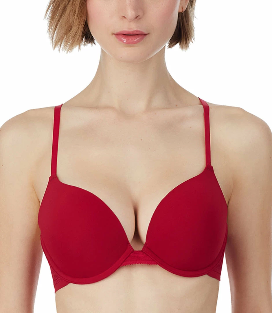 Designed with a deep plunging neckline and lace wings, this bra proves that sexy is also comfortable! With multi way strap placement the Sleek Micro Push Up bra can take you from day to night!