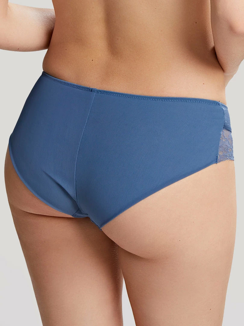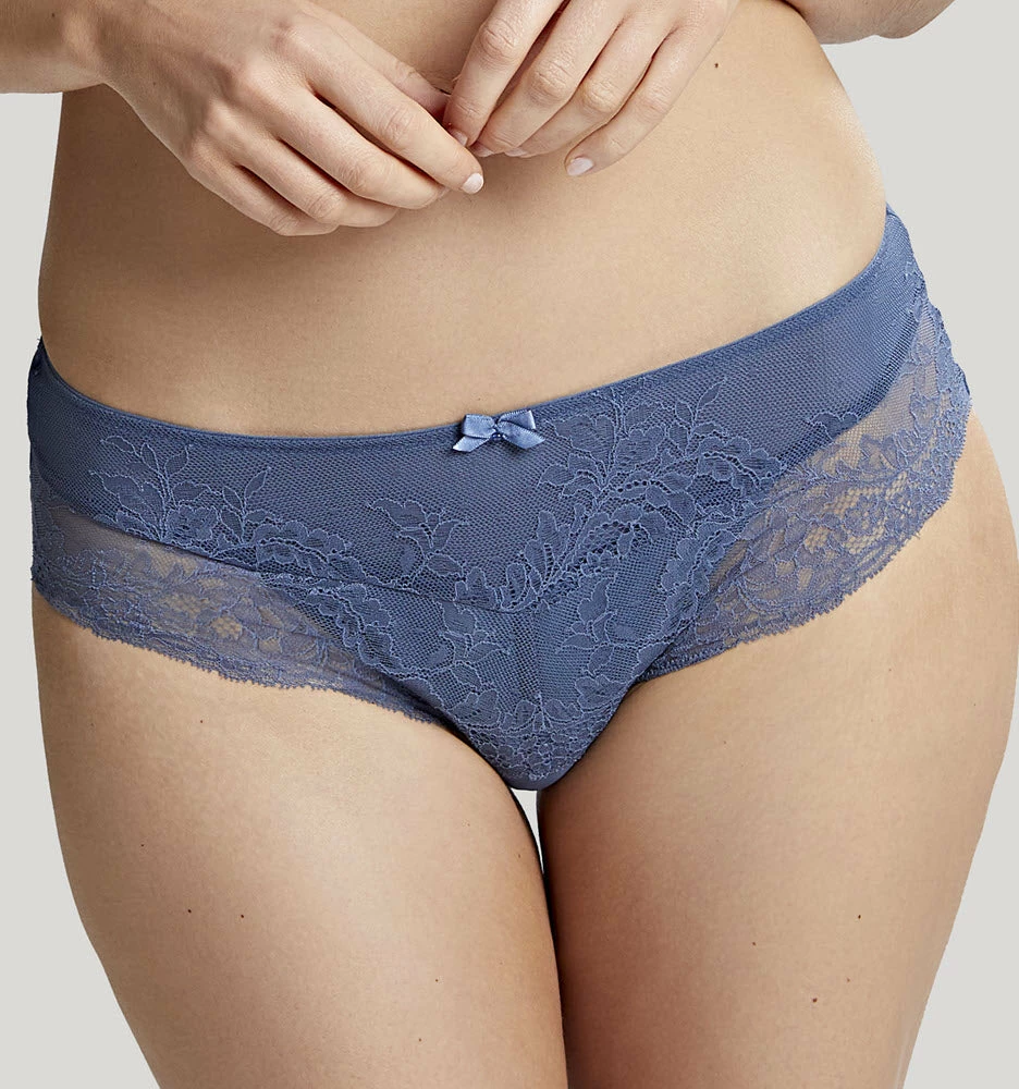 Made with a pretty delicate stretch lace, the Ana brief in Vintage Blue is comfy and flattering. This versatile brief is a great addition to your lingerie collection and the perfect match to the Ana Plunge bra.