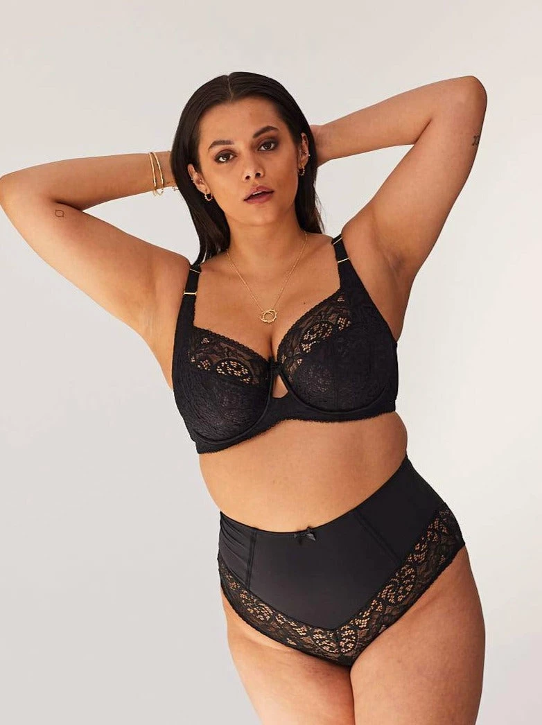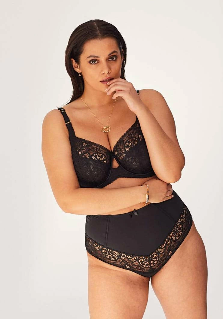 This high waist brief is sure to give you an extra vote of confidence! It has detailed lace and it’s slightly shaping front and back panels.