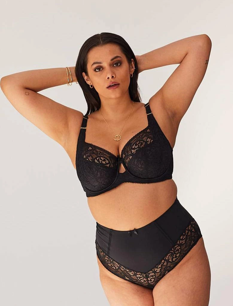 The four section seamed style has lined bottom cups, side slide and stretch lace top cup which provides amazing support and projection for a great shape.