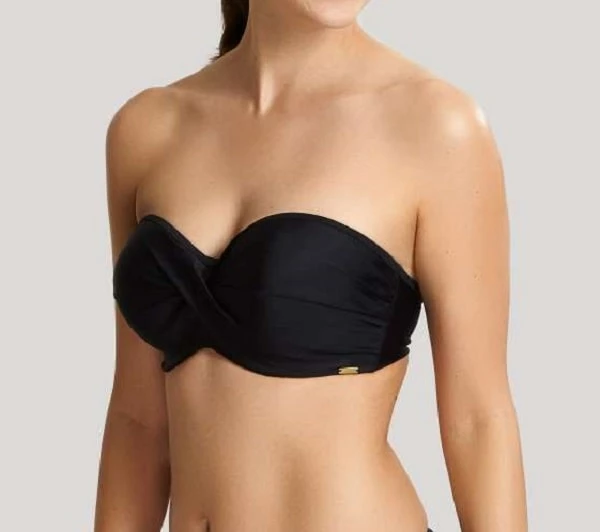 The Anya Riva Twist Bandeau by Panache has a super chic, on-trend look this swim season. The flattering center has gathering details and supportive inner foam cups that offer a great rounded shape.