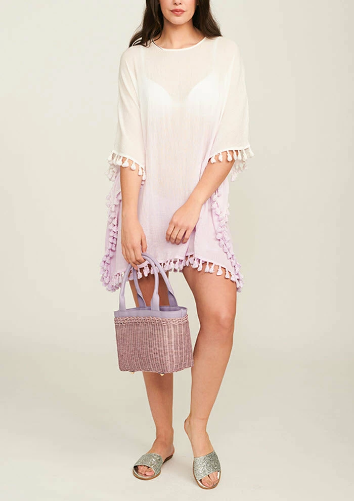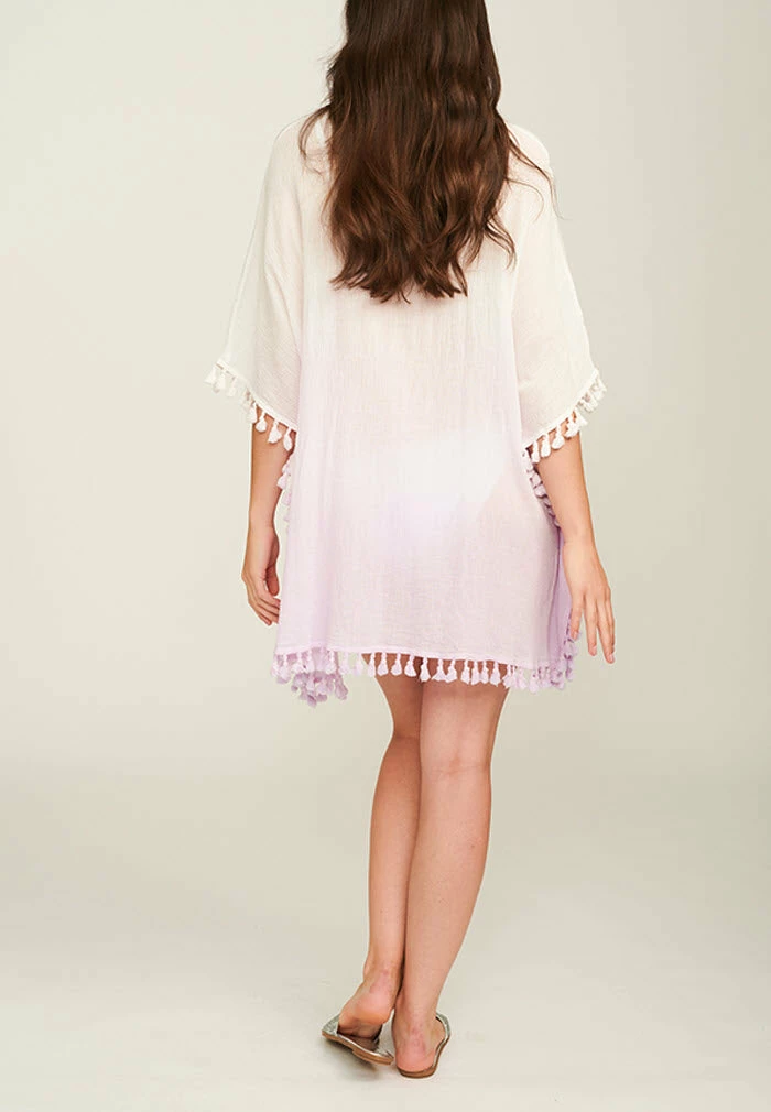 - Ombré tassels from the sleeve, side and lower hem trim for added interest. With a completely forgiving fit, this is a go-to coverup for every shape and size