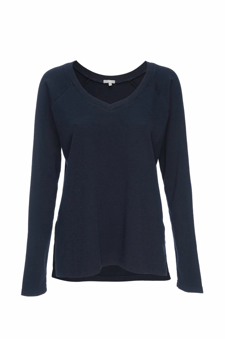 This versatile top can be worn easily for lounge, sleep or casual wear. Its ultra-soft ribbed fabric makes it a key lounge piece to have in your closet. The sweatshirt is made of knit Supima cotton, micro modal and spandex.