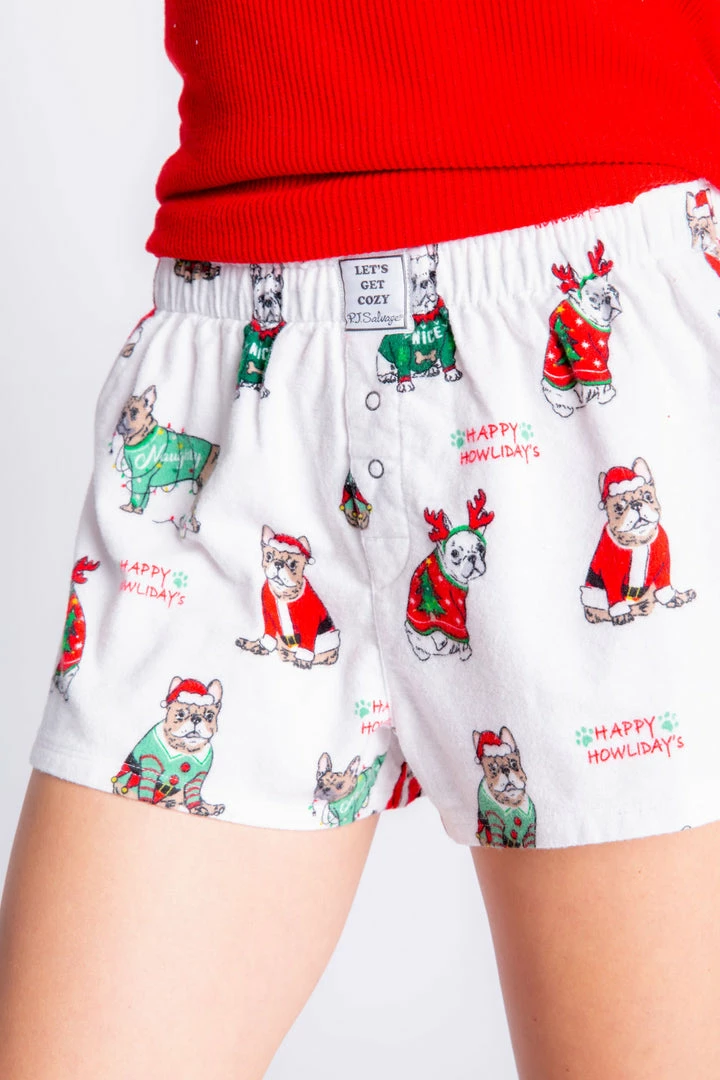 Happy Howlidays from Bra Genie and PJ Salvage! Feel all the holiday feels in these cute flannel boxer shorts.