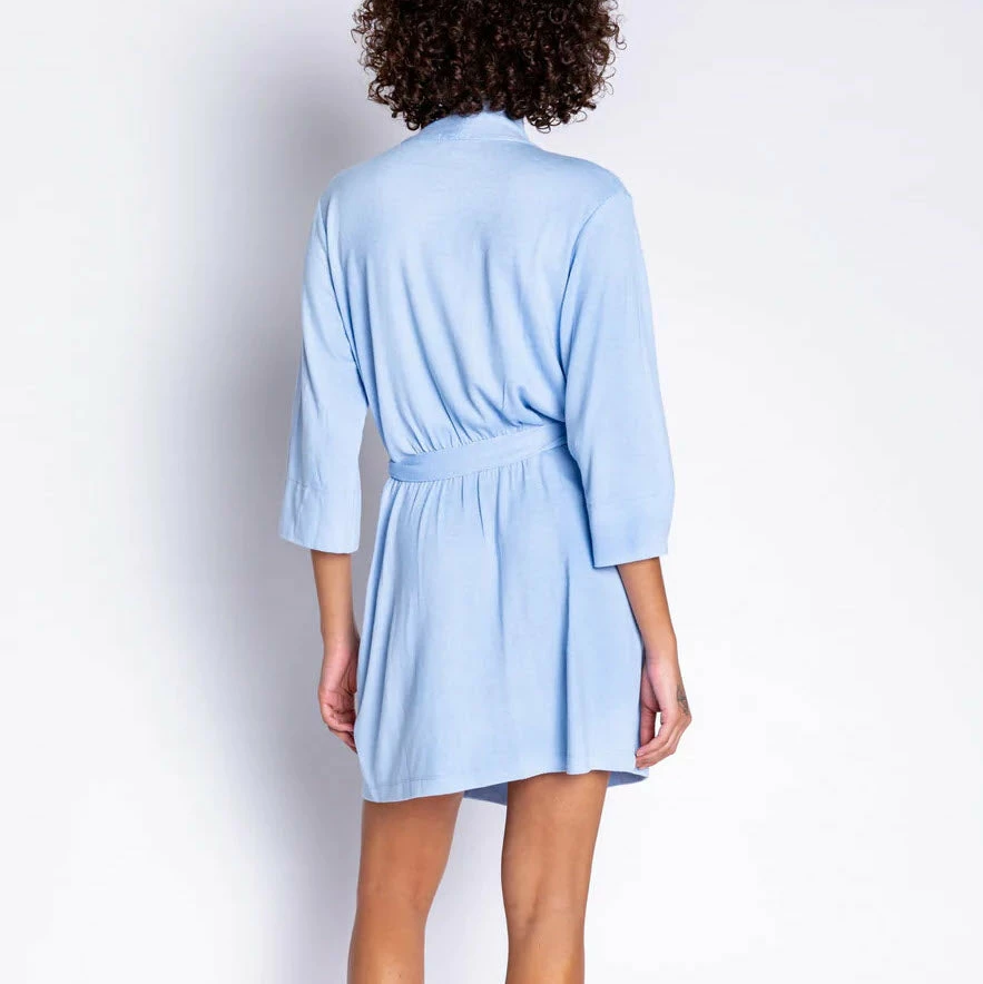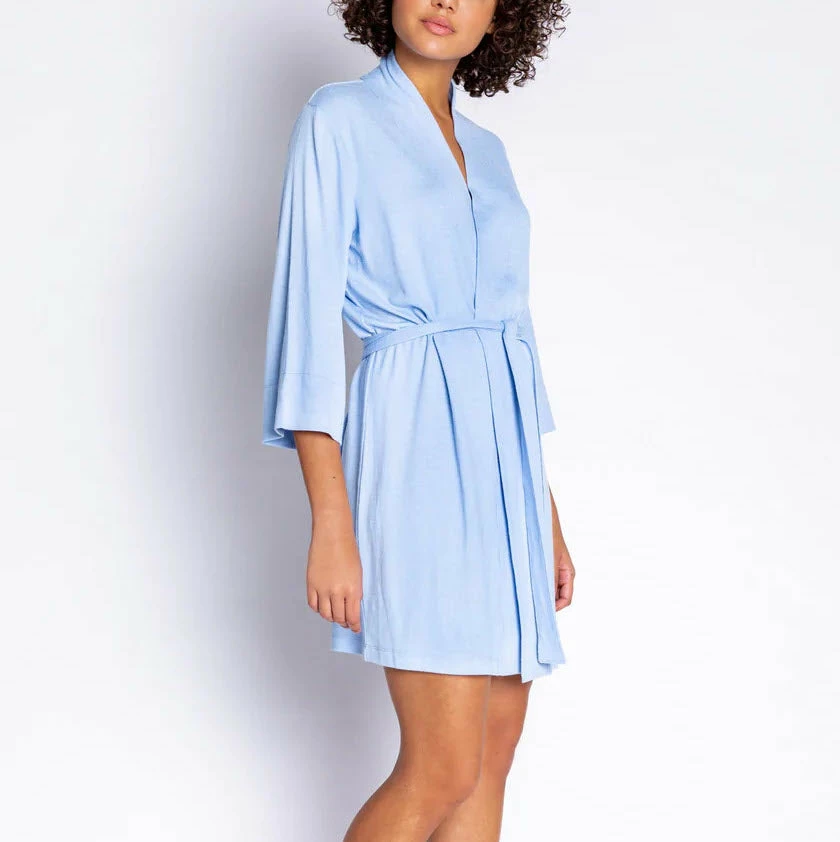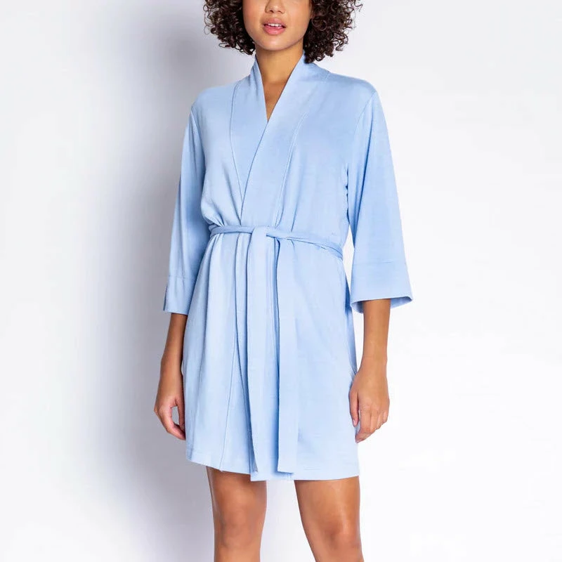 A beautiful robe, inside and out! Made with REPREVE® certified recycled fabric (made from recycled plastics), this silky-soft robe has a modern shape with 3/4 sleeve, self belt and clean lines. Feel-good fabric makes you feel good on the inside and outside!