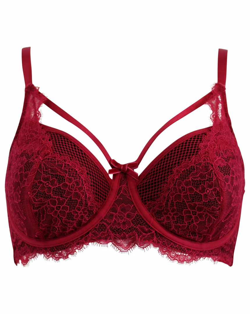Fall in love all over again with the Dark Romance underwired bra. Feel sultry in this gorgeous bra with a mix of fishnet and delicate eyelash lace. The caged strap detail adds a touch of glamour to your overall look. Match with underwear and accessories from the Dark Romance collection for the ultimate romantic look.Â