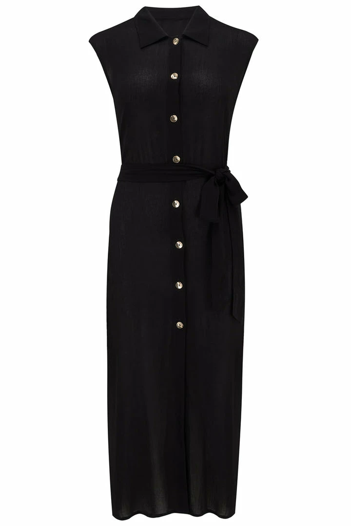 We have the perfect cover up to take you from beach to bar in style. The Sleeveless Crinkle Maxi Beach Shirt features a more relaxed style, perfect for a day of lounging or exploring. Designed with a comfortable tie waist and dramatic side splits, this style looks effortless when paired with swimwear from the Santa Cruz collection. Finished off beautifully with hammered gold button details.