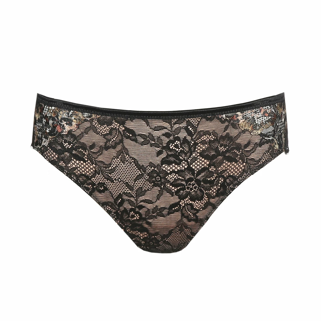 Feminine thong with all-over lace and elegant embroidery that continues onto the back.