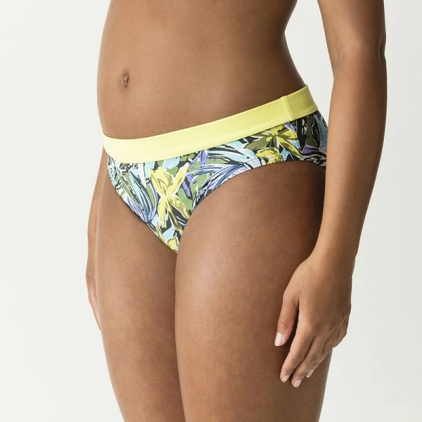 This trendy print is a vibrant, Hawaiian print. The bright colored flowers with the yellow trim makes this perfect for the beach or the pool!