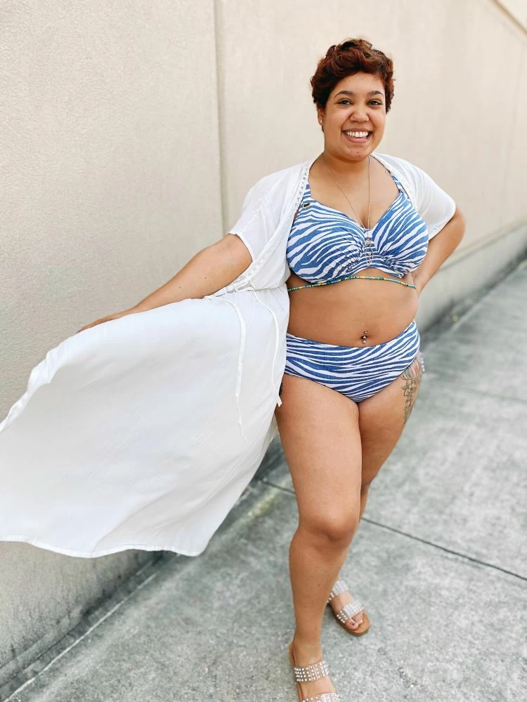 - Use the playful ties at the sides to adjust the fit