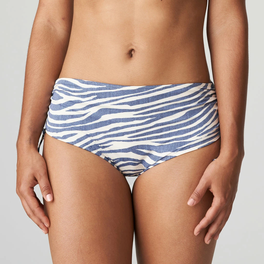 The high waist comfortably streamlines your silhouette. Adjust the ties a bit higher up for a more seductive look. Animal print meets classic navy stripes: PrimaDonna Swim Ravenna combines two trends in one cool design. The sets are made from quick-drying swimsuit fabric with a denim look and brass details as a finishing touch. Stylish swimwear with a cool twist.
