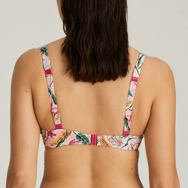 This fun summery tropical print is pink and oh so flattering for all skin tones! This lightly contour bikini top is not only supportive but is convertible as well!
