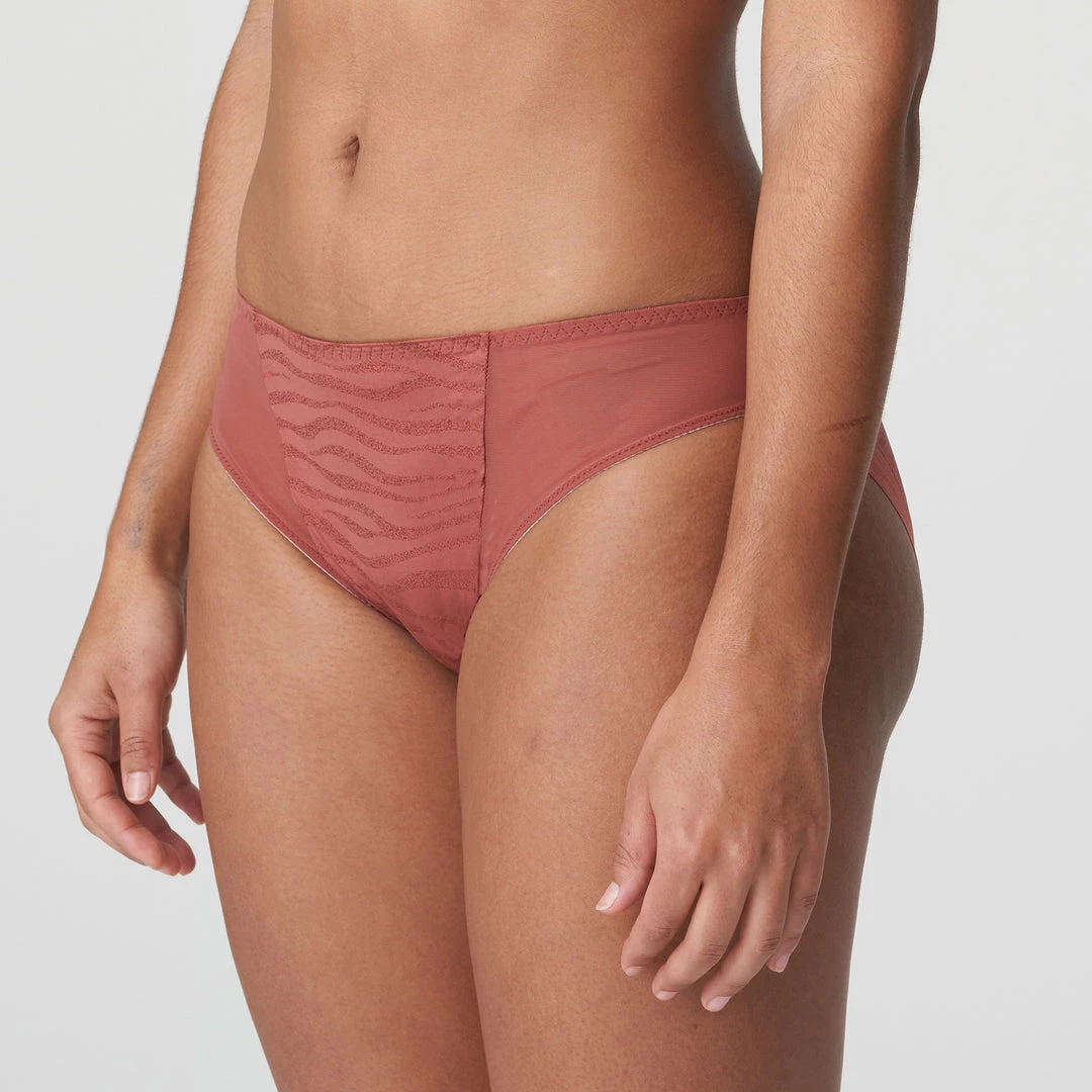 Smooth Rio briefs made from a shimmery satin fabric with a stardust zebra print. The flirty tulle at the legs adds the finishing touch. Pink Brandy is a terracotta hue with a warm glow. A trendy neutral that flatters all skin tones.