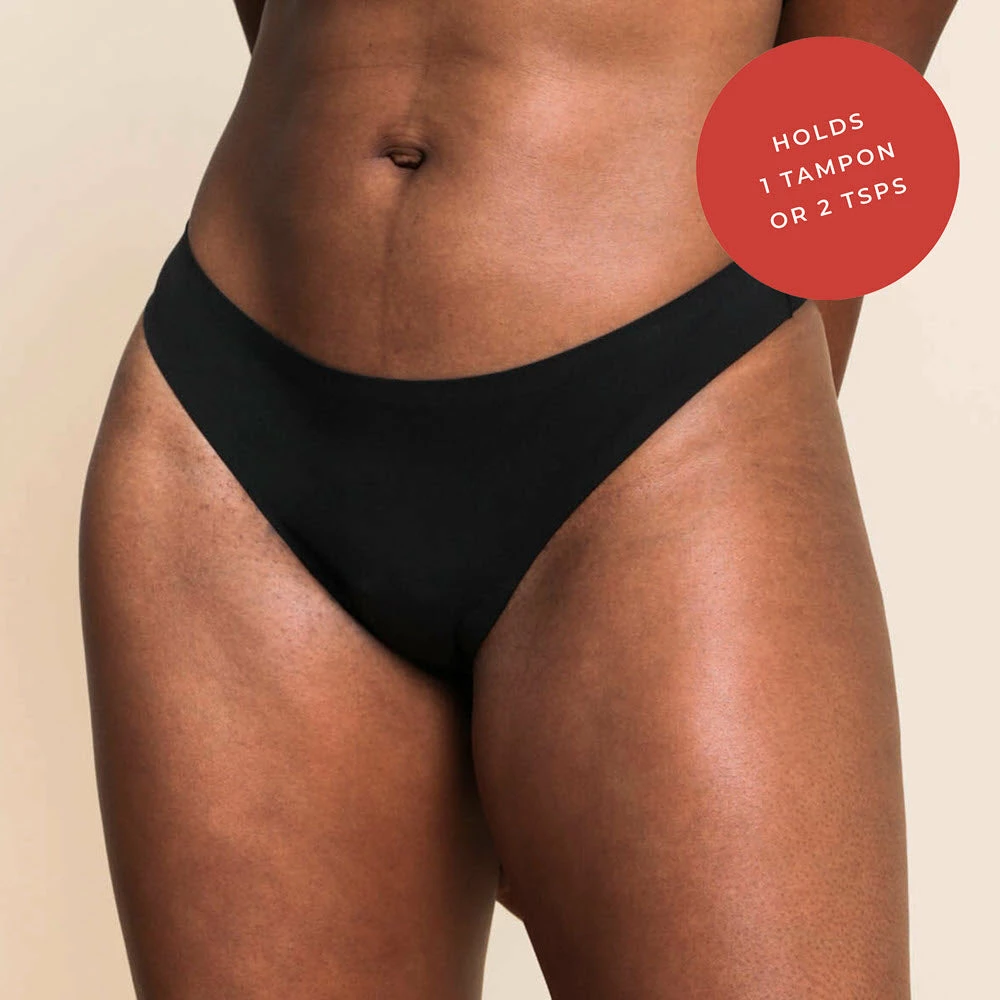 The Thong features an invisible leakproof core in the gusset. You’ll be comfortable and protected with our soft and slim multilayer core.
