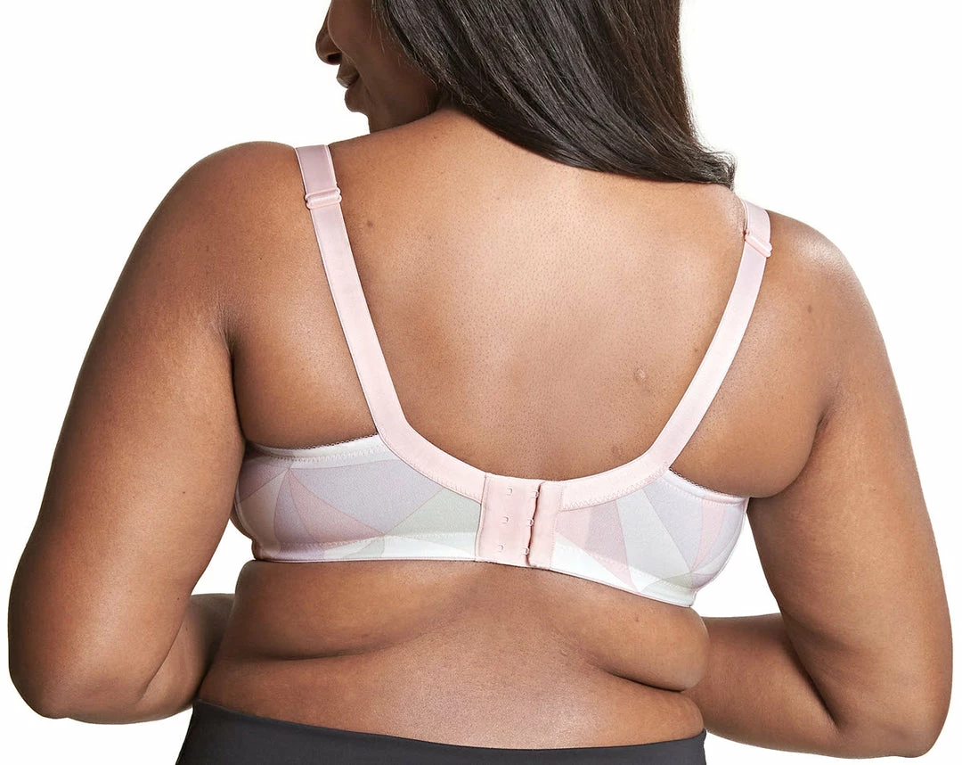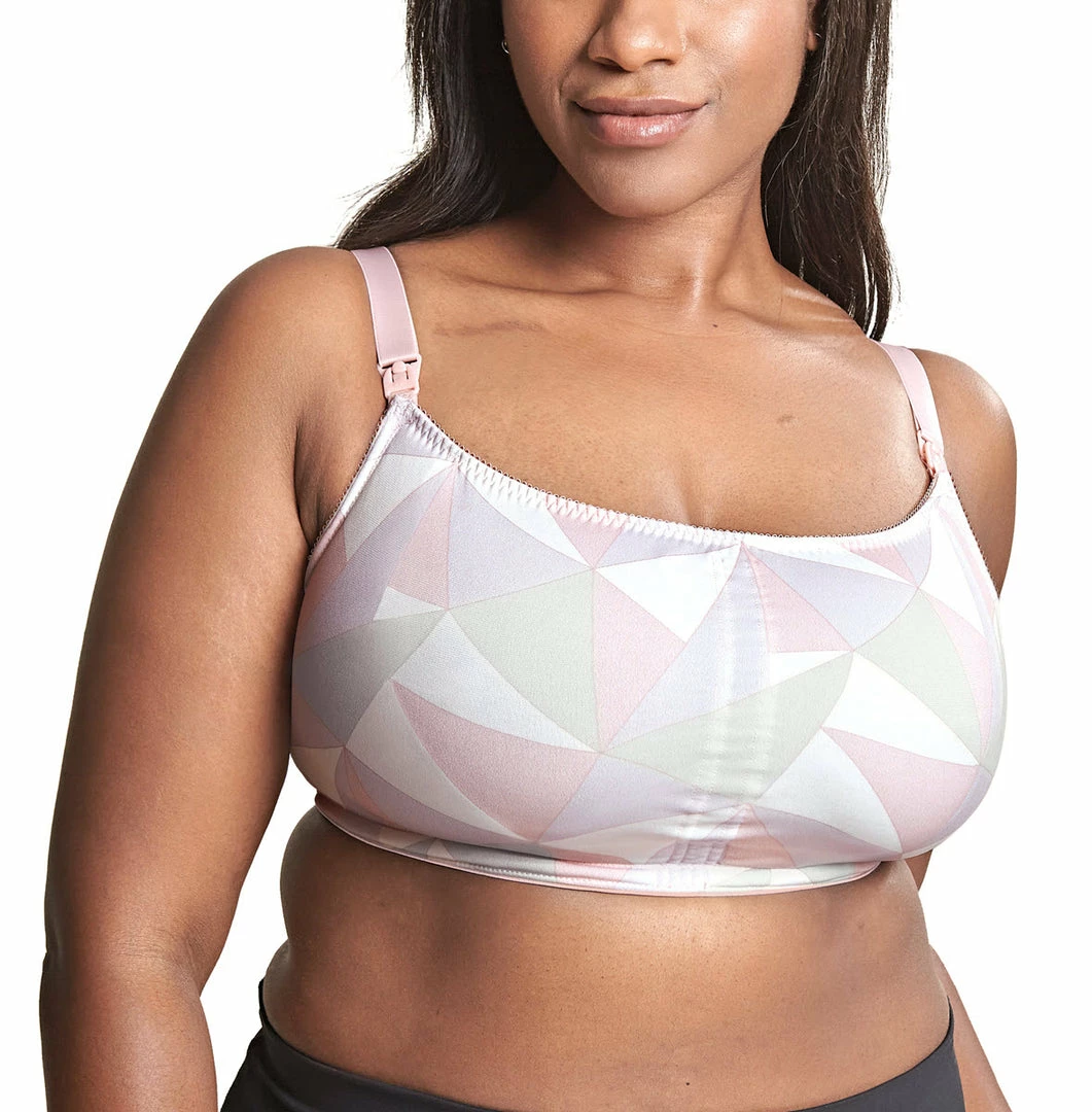 The clever design on this bra means it can be worn as a comfy crop top or ruched down for a plunge neckline. Now available in a light geometric print which is discreet under clothing. Blossom is triple cup sized, designed to fit and support mothers all the way through pregnancy and breastfeeding.