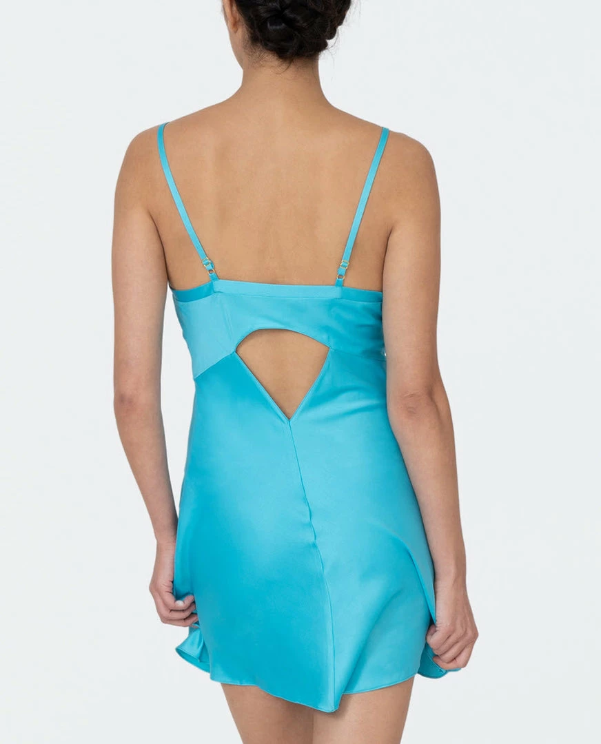 The Fresh chemise is a traditional silky charmeuse chemise with an open back detail.