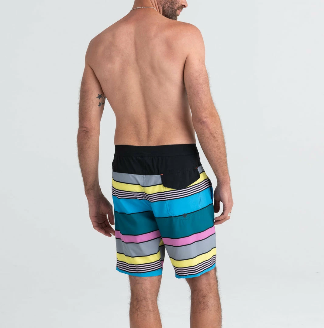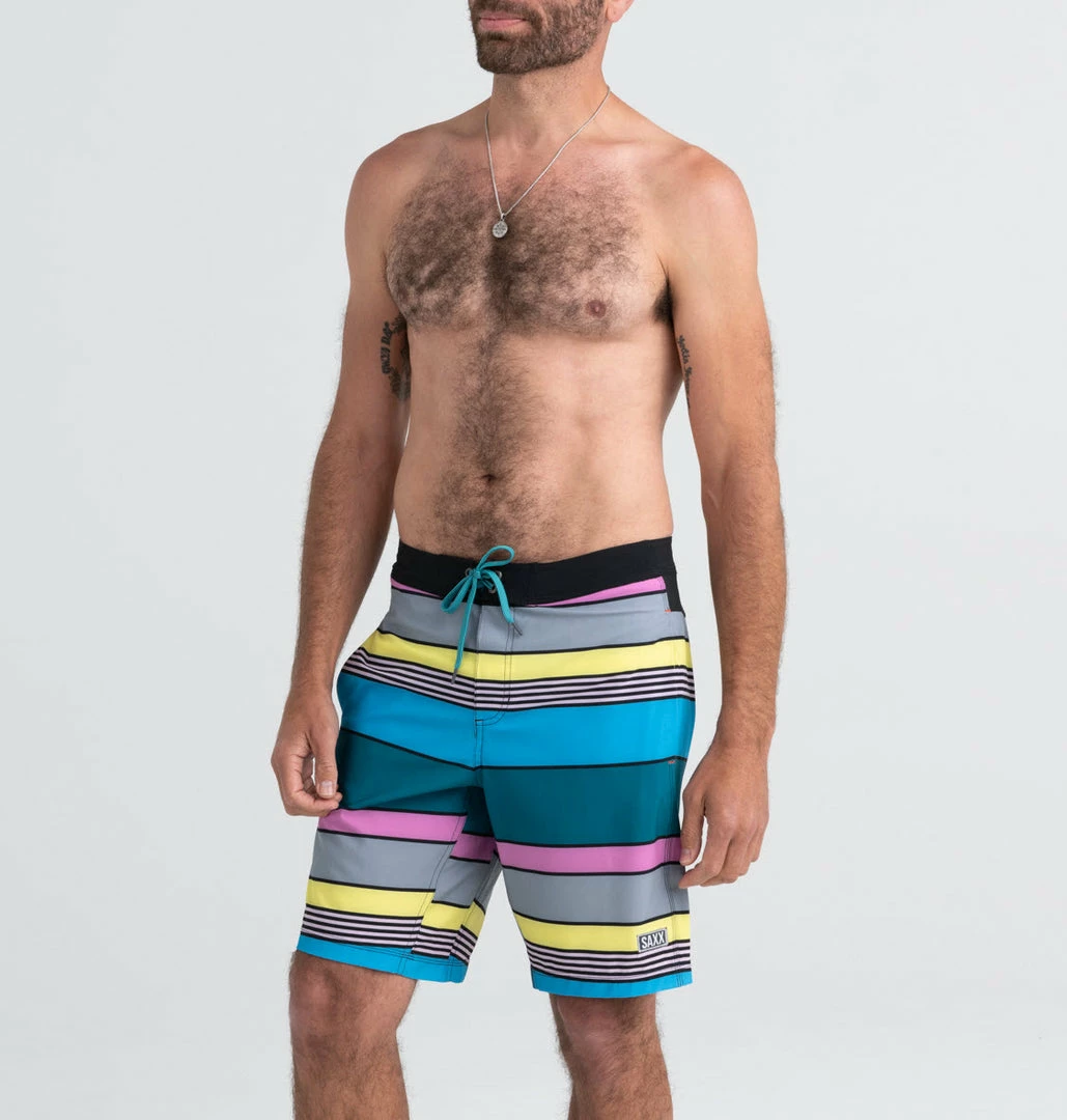 These 2N1 board shorts combine a Slim Fit liner over a fixed-waist shell. The integrated liner is form-fitting through the butt and thighs.