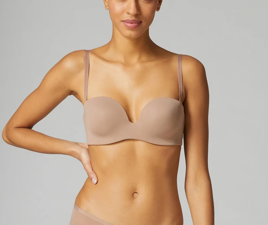 Without question, everyone needs a dependable seamless strapless bra in their wardrobe. Sleek, comfortable and supportive, the Essentiel Strapless does it all. Designed to disappear under your clothes and stays up all day (and night) without a second thought. So go on, wear the dress.