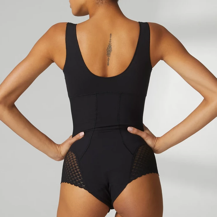 Supports and smooths your waist, butt and back. Shapewear or style piece? We think you should have it all. This everyday sculpting bodysuit targets your core and back, shapes your butt and offers support for your bust. French lace gives this everyday shapewear piece a chic update you’ll love to layer under your daily chic. Wear it with or without a bra and always feel beautiful, from café to soirée.
