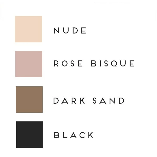 - Comes in Nude, Rose Bisque, Dark Sand and Black – See color chart in images