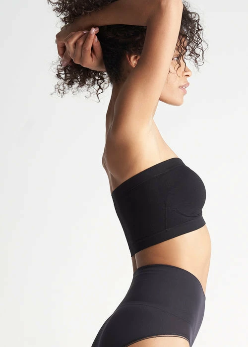 This comfy bandeau bra is the perfect option for all your strapless, sheer, or low cut tops. Core Essential colors offered in Black, Almond, Frappe and White.